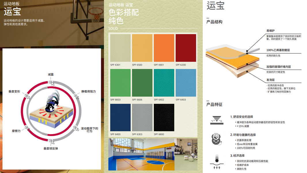LX HAUSYS的運(yùn)寶(4.5T)、暮睿(4.0T)兩款運(yùn)動地板產(chǎn)品,根據(jù)運(yùn)動場地標(biāo)準(zhǔn)開發(fā),為運(yùn)動者提供優(yōu)異的運(yùn)動表現(xiàn)和安全保障。