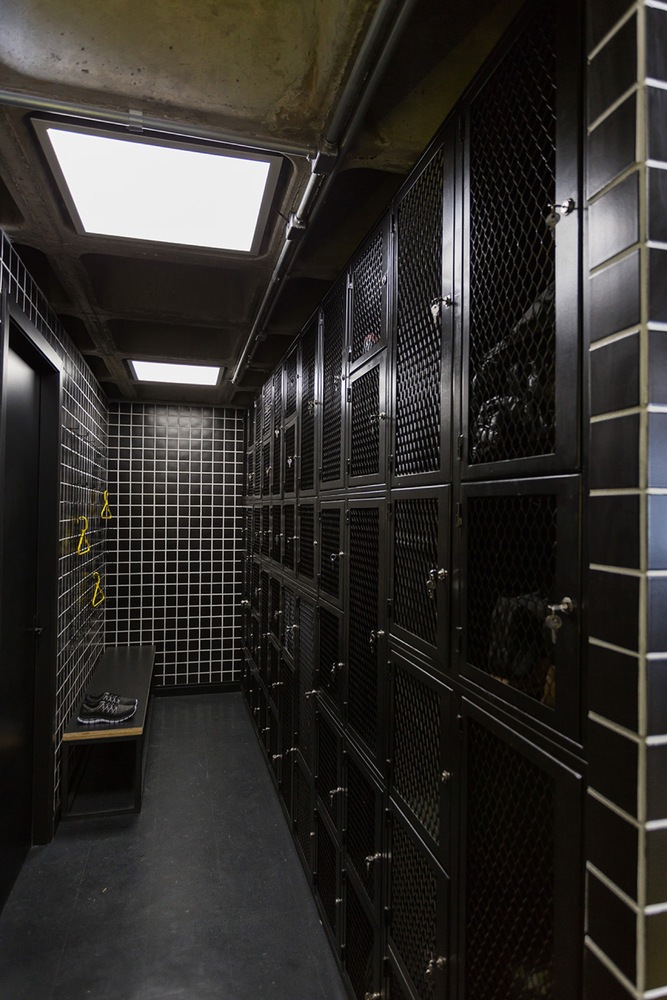這個設計方案實現了整體效果最大程度的一致性。同時各個區域的劃分也是必要的:接待區和休息區、更衣室、熱身區和訓練區——通過PVC地板顏色的區分設計來實現。休息室和接待區使用了更強烈的標記:地板、墻壁和天花板被漆成黃色。這個想法是創造一個生活空間、 一個會員可以休息的區域,更重要的是,在訓練時間之外進行社交。